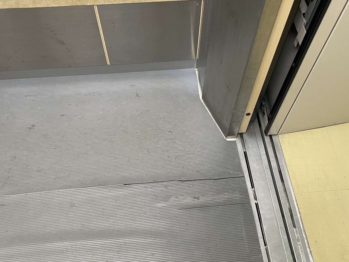 大仙市役所大曲庁舎1階に、エレベーターが設置されてから12年ほどが経過しました。たくさんの市民の方々が利用してきたエレベーターです。庫内に敷いてあるマットの老朽化が進み、この度入れ替えのご相談を承りました。