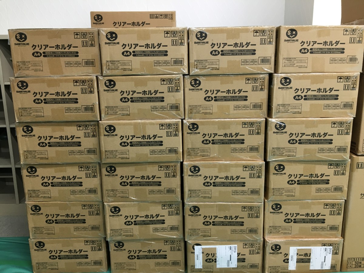 このクリアホルダー、100枚入り1パックという単位がポピュラーですが、このように、単位が多いパッケージも発売されているんです。逆に、少ない10枚単位さらには3枚など、少量ロットもご用意しております。大人数の事務所対応から、個人のお客様まで、さまざまなご要望に合わせて商品ラインナップされています。