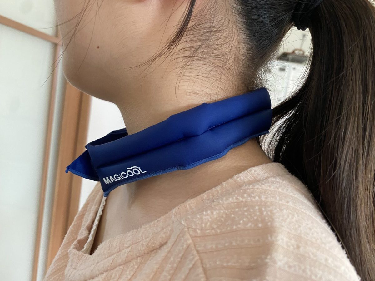 初めは、ハンカチほどの薄さの布の状態です。これを軽くもみながら水に浸して2~3分ほど水を含ませると、モコモコと膨らみます。表面の水滴を軽く拭き取り、なるべく首に密着するように巻き付けるだけ。すぐにスーッとひんやりしてきます。マジックテープでとめるので、動いてもとれにくく、サイズの微調整もできます。繰り返し使えて経済的。抗菌防臭加工で臭いも気にならない。ご飯の支度や掃除など、毎日汗かく家事の時。部活や野外活動などのお子様の熱中症対策として。外回りや屋外で仕事をする際にも。水にぬらすだけで、長時間冷感が持続する「マジクール」で、少しでも快適な夏をお過ごしください!