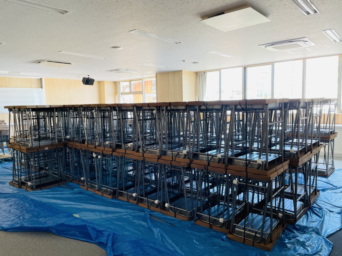 市内高等学校様へ、生徒用のデスクとイスを納品させていただきました。メーカー同行の後、何度もご提案させていただき、お客様とも入念に打ち合わせを行いました。生徒用イスに関しては、背・座ともに「ポリプロピレン樹脂」が使われており擦傷に強く、昔からある合板と違い、ササクレで衣服等をいためる心配もありません。また本体の軽さも魅力で、移動させる際も軽々持ち運べます。